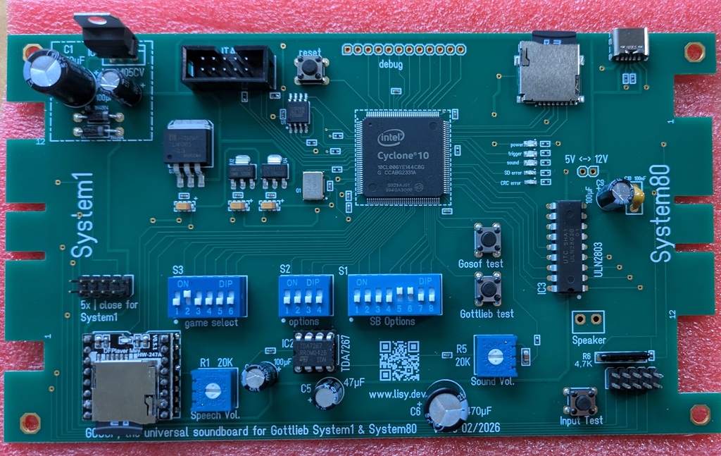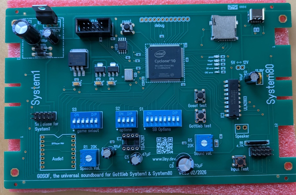 Two standard micro SD cards ( one for the speeches in DFplayer and one to store the Gottlieb rom code for the FPGA) with minimum 1GB space each.