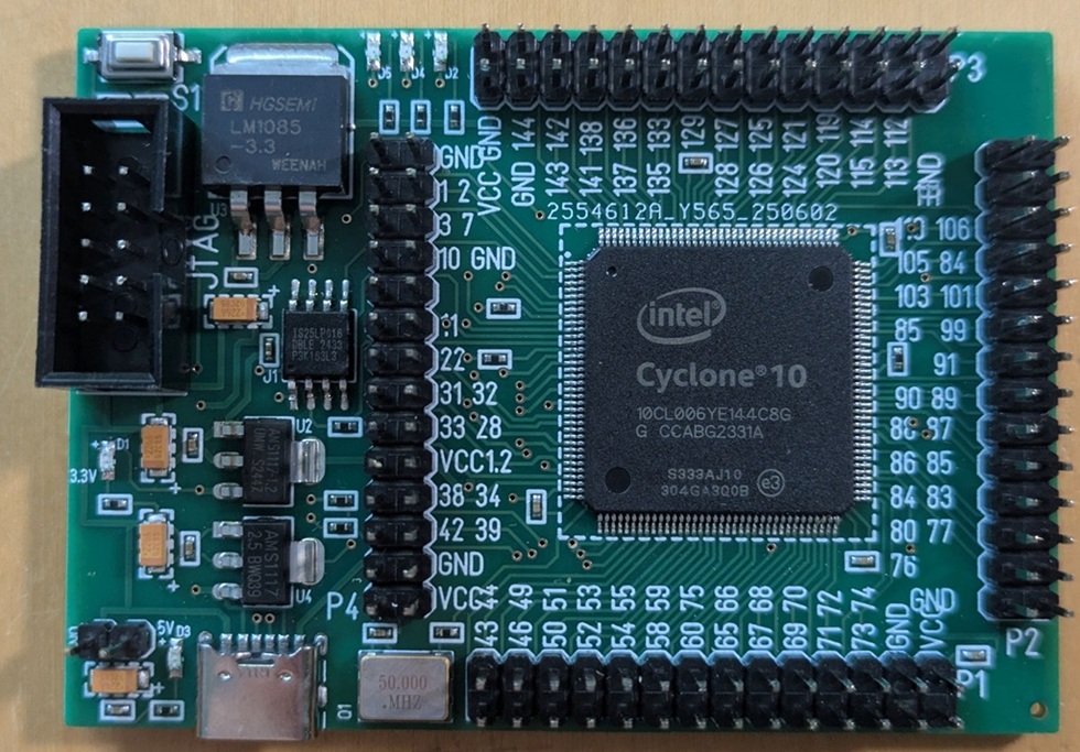 Latest design, based on the cheap 'Cyclone 10' chip by having the same pinout as my cyclone II and Cyclone IV boards.