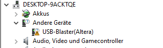 - Now the Altera USB Blaster should be visible under ‘USB-Controller’
