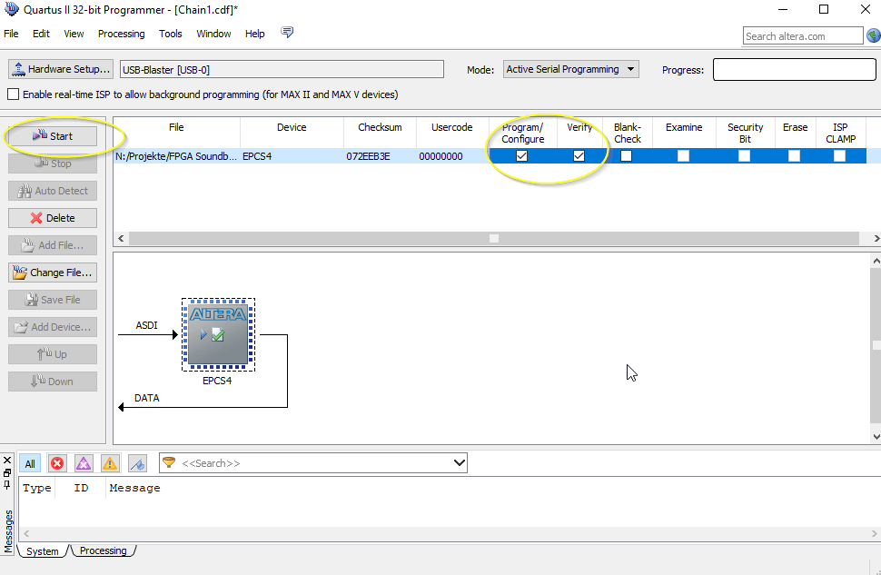 Make sure in the Hardware setup ‚USB-Blaster‘ is visible
