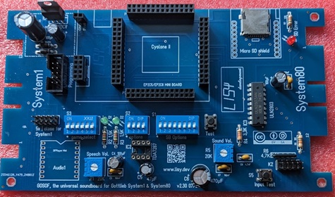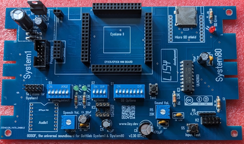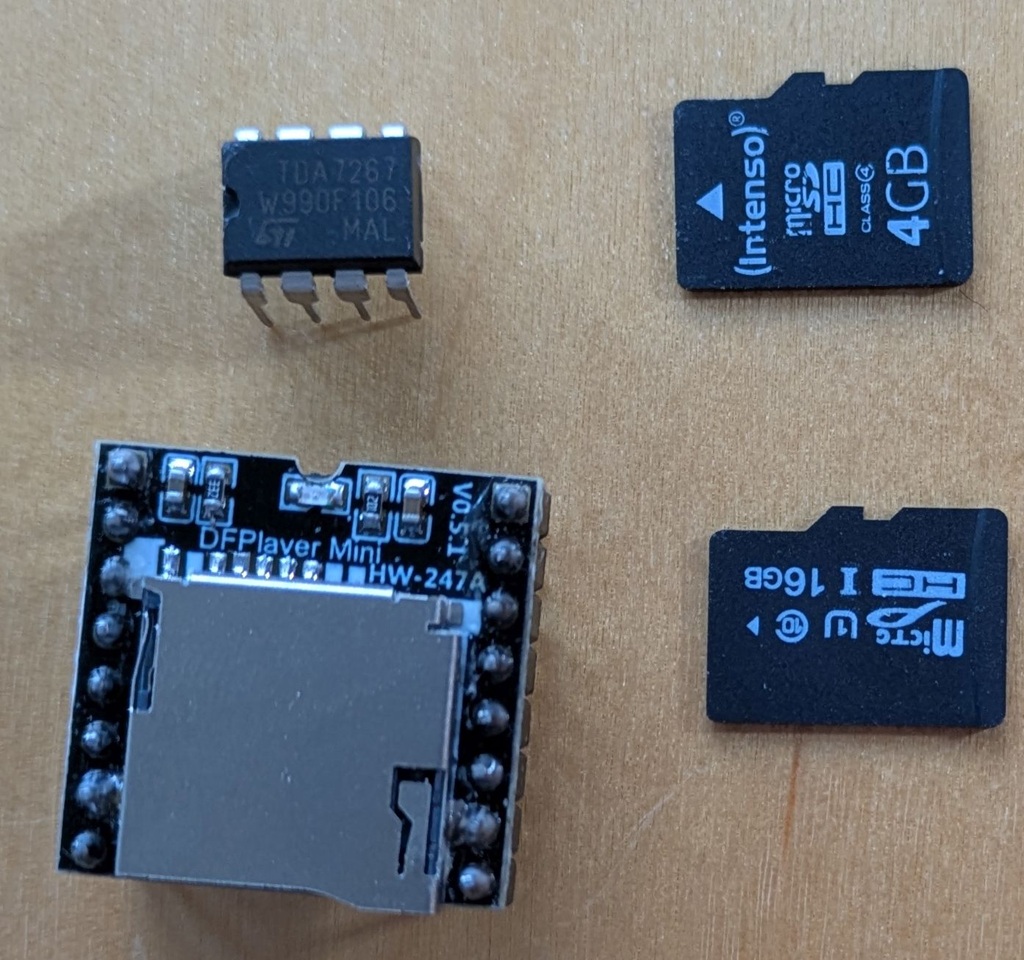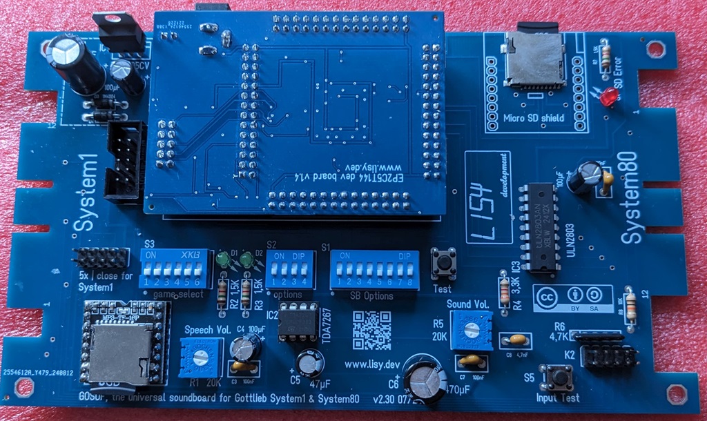 Two standard micro SD cards ( one for the speeches in DFplayer and one to store the Gottlieb rom code for the FPGA) with minimum 1GB space each.
