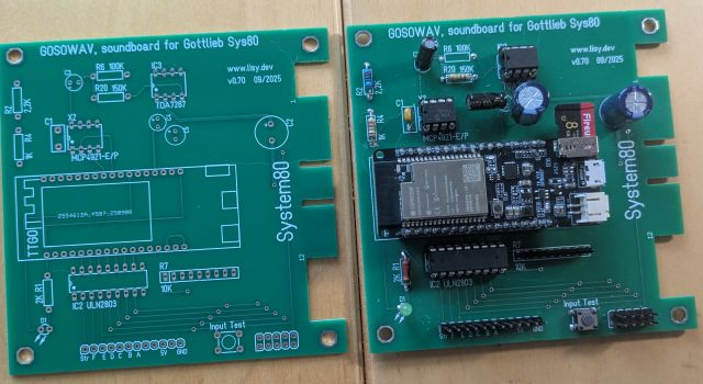 Soundboard for Gottlieb System80 with triggered 'wav' files for sound self customizing.
