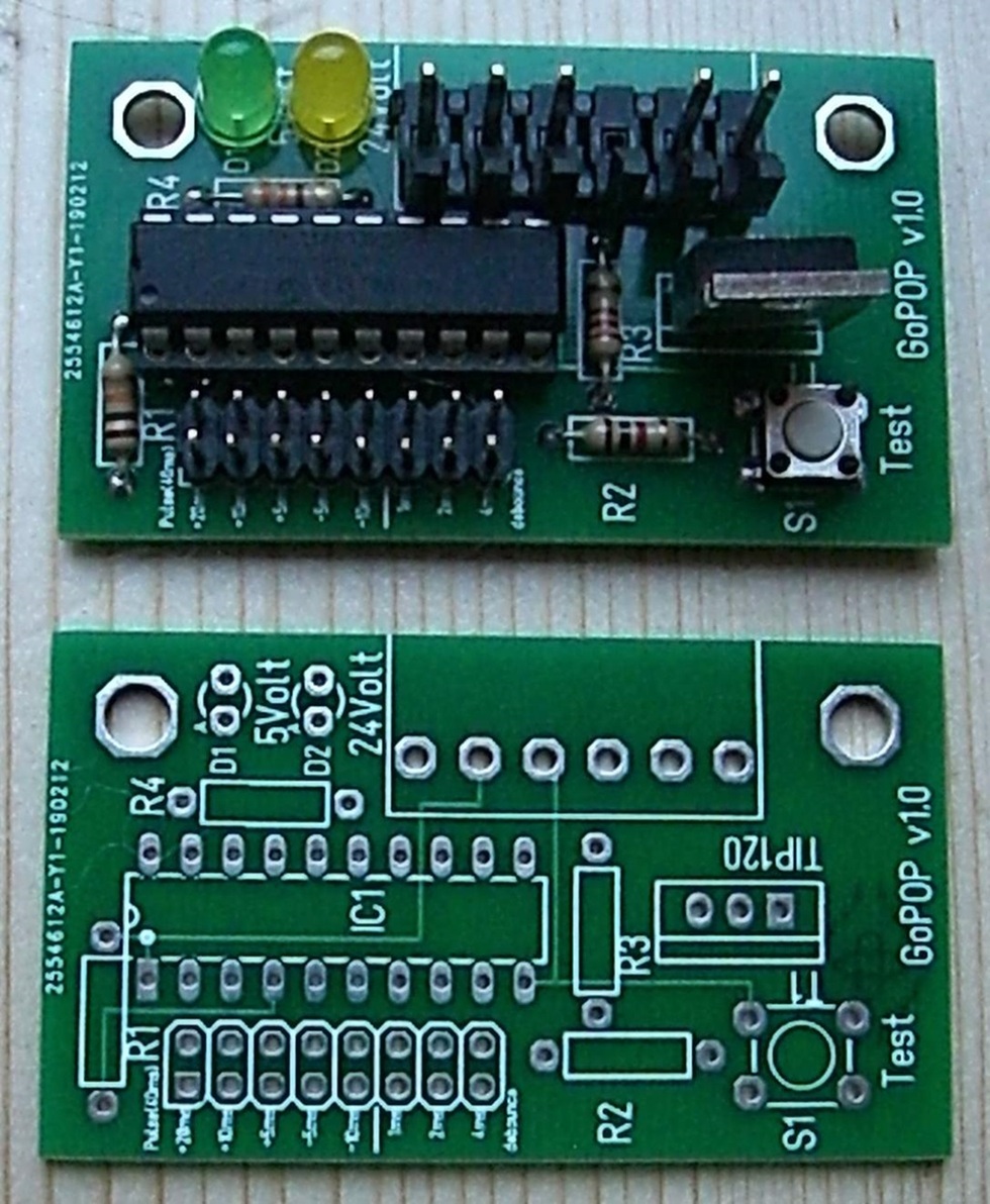 This will replace your old System80 Pop Bumper Driver Boards (PBDB) and give you the opportunity to add These devices to your System1 game. It comes with LEDs to control 5 Volt and Solenoid power, a test button and with adjustment for pulse-time easily done by jumpering.