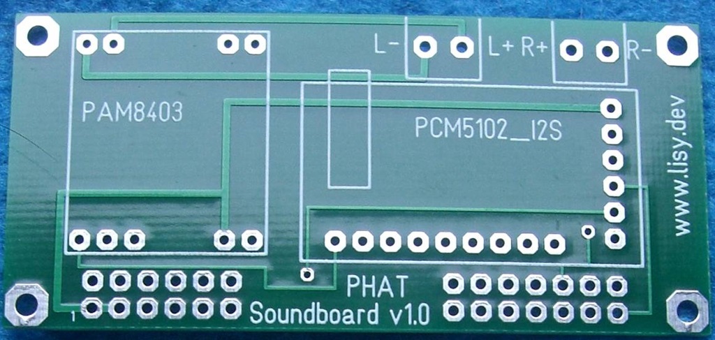 On each LISY MPU you find a place für inserting an (optional) pHAT compatible soundcard. I build my own soundcard by using standard components you can find for example on eBay or Aliexpress. Gerber Data to produce you PCB you will find below.