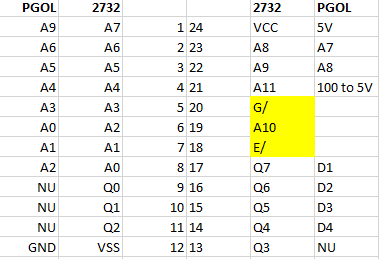 The mapping provided by the adapter is a tricky one. Because of the small size of the adapter they did not an 1:1 mapping but a mapping according to the needs of the PCB routing. As a result the rom content red from the 2732 needed to be converted to the '6531 format'.
