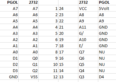 The mapping provided by the adapter was an easy one. It just maps the address & data lines 1:1 between the original 6532 and the 2732 rom. I was able to read the 2732 rom and by comparing it to existing Gottlieb System1 roms it turned out that it is identical to Pinball Pool rom.